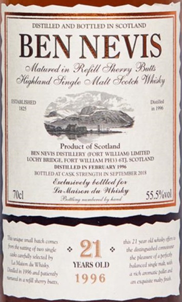 Ben Nevis 21 yo 1996-2018 (55.5%, OB for La Maison du Whisky, refill sherry butts, 1049 bottles)