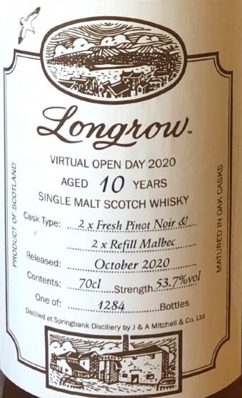 Longrow 10yo 2020 (53.7%, OB, 2x Fresh Pinot Noir & 2x Refill Malbec Casks, 1284 bottles)