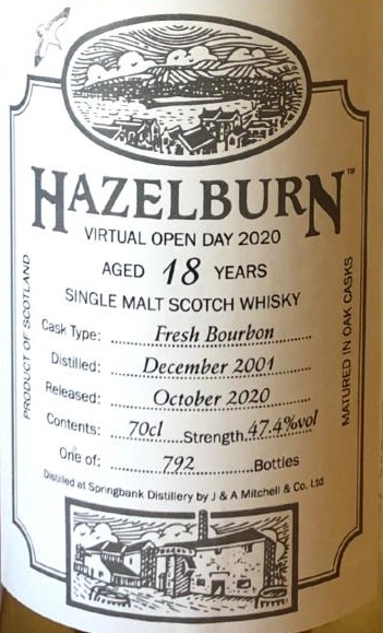 Hazelburn 18yo 2001-2020 (47.4%, OB, Fresh Bourbon Barrels, 792 bottles)