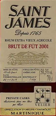 Saint James Brut de fût Velier Private casks 2001-2019 (50.3%, 1157 bottles)