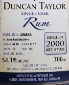 Duncan Taylor Long Pond 2000-2017 (54.1%, cask #17, 237 bottles)
